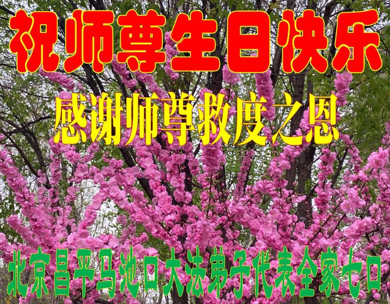 北京昌平马池口大法弟子代表全家七口祝师尊生日快乐!