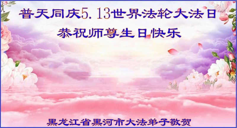 黑龙江省黑河市青年大法弟子恭祝慈悲伟大的师尊生日快乐!