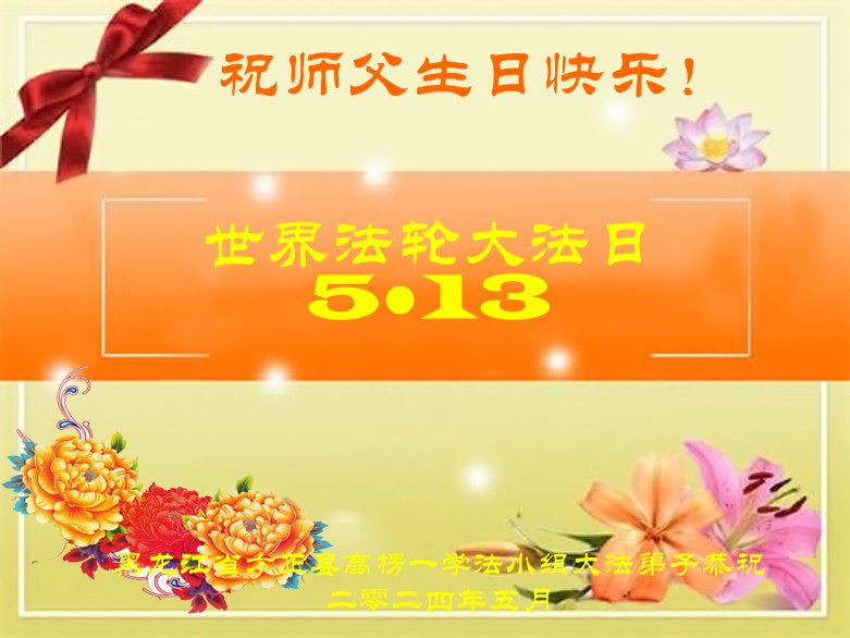 感恩师尊慈悲苦度!弟子一定精進实修,助师正法。 黑龙江省方正县高楞大法弟子恭贺世界法轮大法日!