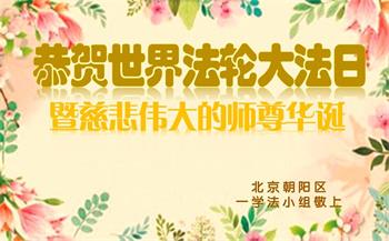 谢谢师尊的慈悲救度与呵护!我们学法小组同修谨记师尊的教诲,多学法,修好自己,做好三件事,遇事向内找,共同完成我们的历史使命,圆满随师尊回归真正的家园。 北京朝阳区一学法小组大法弟子恭贺世界法轮大法日暨慈悲伟大的师尊华诞!