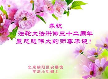 感恩师尊的慈悲看护,使我们学法小组的大法弟子能够正念履行使命,兑现誓约。最后的时光,我们一定做好,请师尊放心! 北京朝阳区农展馆学法小组大法弟子恭祝师尊华诞!