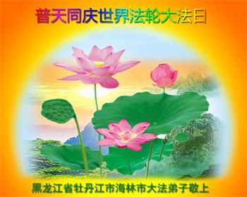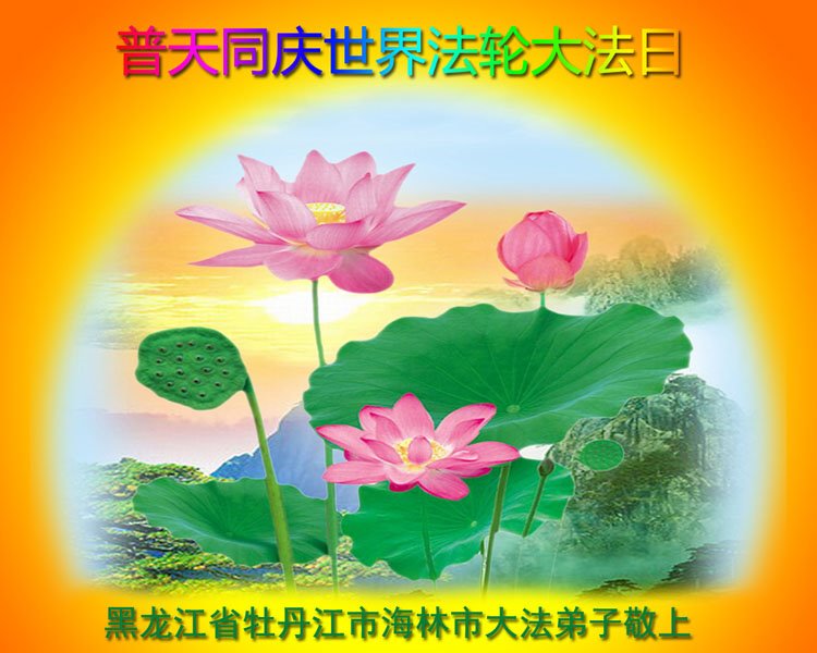 无限感恩师尊的圣恩!弟子一定兑现誓约,助师救人。 黑龙江省牡丹江市海林市大法弟子恭贺世界法轮大法日!