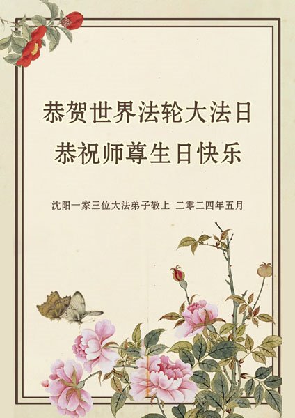 沈阳一家三位大法弟子恭贺世界法轮大法日!恭祝师尊生日快乐!