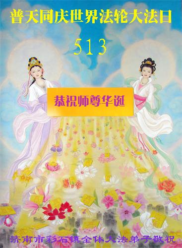 济南市彩石镇全体大法弟子恭祝慈悲伟大的师尊生日快乐!