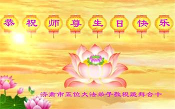 济南市五位大法弟子恭祝慈悲伟大的师尊生日快乐!