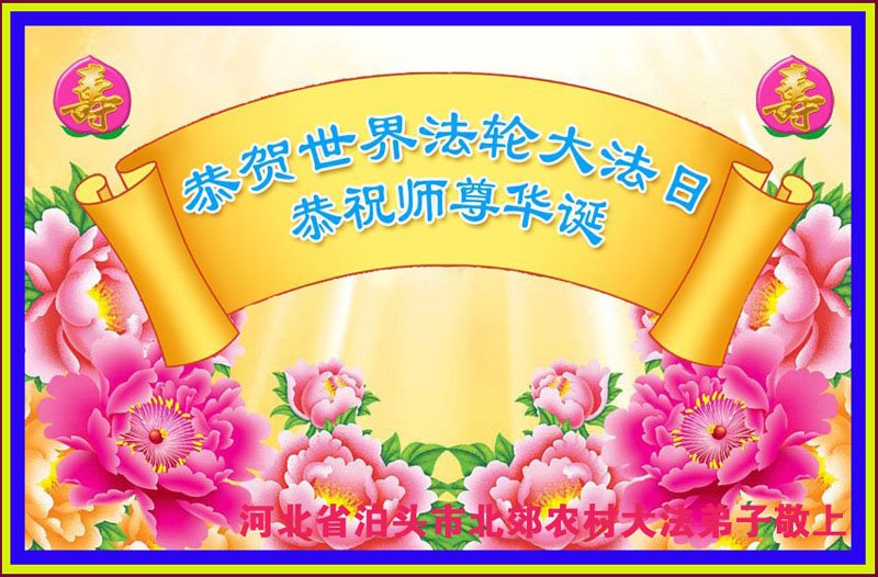 感恩师尊慈悲救度!弟子今后多学法,多救人,兑现使命,跟师父回家。 河北省沧州市泊头市全体大法弟子恭祝师父生日快乐!恭贺法轮大法日!