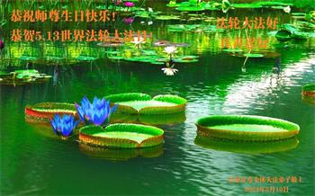 感恩师父的慈悲救度!今后我们更要做好三件事,遇到矛盾找自己,多多救人。 湖北荆门市一女大法弟子恭祝师尊生日快乐!