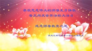 黑龙江省哈尔滨市巴彦县一学法小组大法弟子恭祝师尊生日快乐!普天同庆世界法轮大法日!