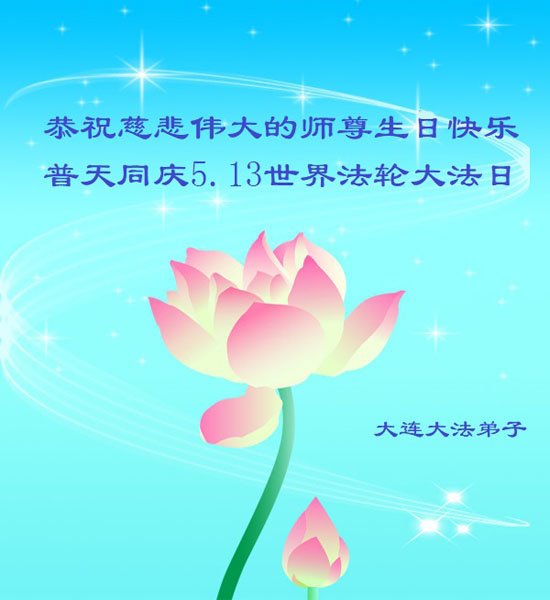 辽宁大连大法弟子恭祝师尊生日快乐!感恩师尊慈悲苦度!