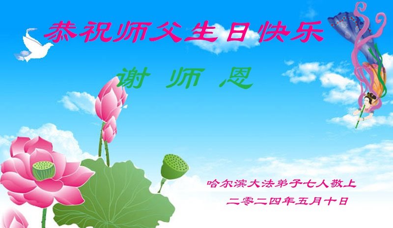 黑龙江省哈尔滨七名大法弟子恭祝师尊生日快乐!