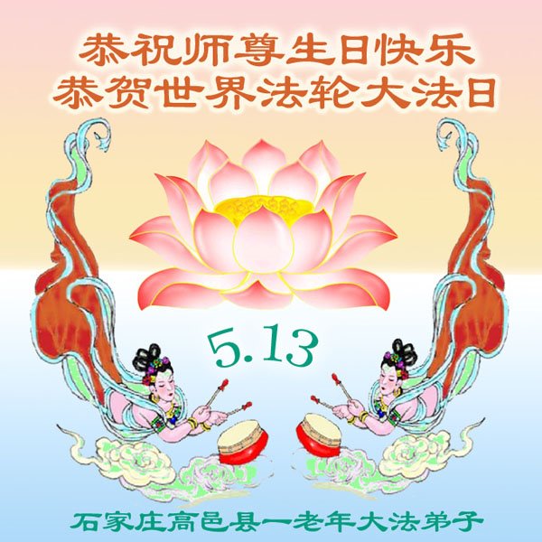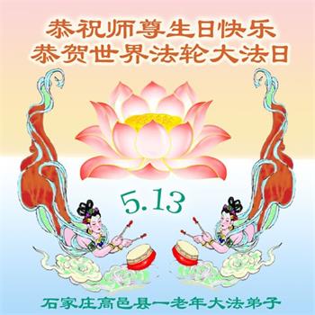 河北石家庄高邑县一老年大法弟子恭贺世界法轮大法日暨师尊华诞!