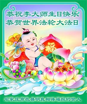 河北石家庄高邑县一大法小弟子恭贺世界法轮大法日暨师尊华诞!