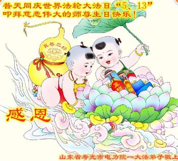 山东省潍坊市寿光市电力院一大法弟子恭祝师尊生日快乐!