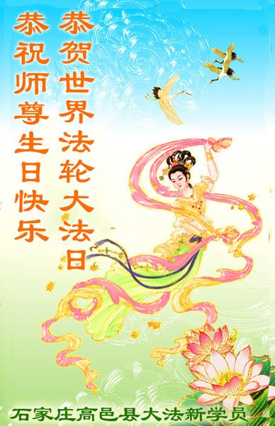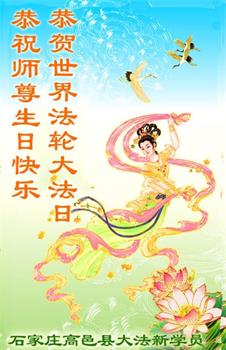 河北石家庄高邑县大法新学员恭贺世界法轮大法日暨师尊华诞!