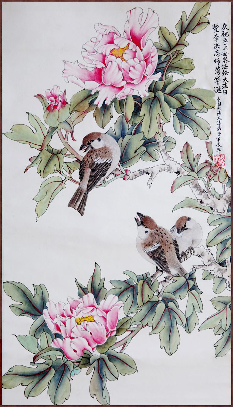 【庆祝5.13】牡丹图:庆祝五·一三法轮大法日暨李洪志师尊华诞