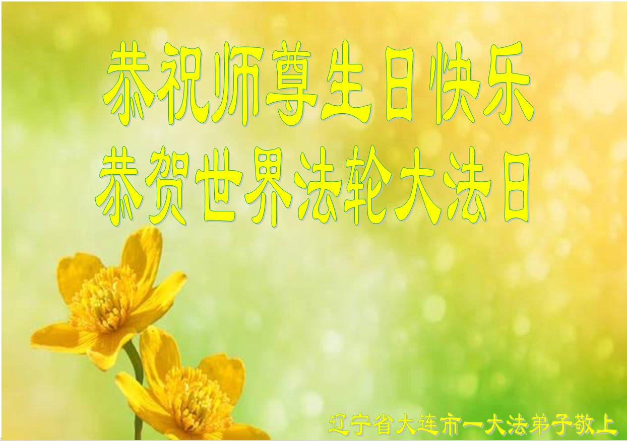 恭祝师父生日快乐!师父辛苦了!普天同庆世界法轮大法日! 大连市甘井子区一学法小组大法弟子敬上 辽宁大连市一大法弟子家庭恭祝师父生日快乐!