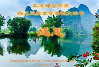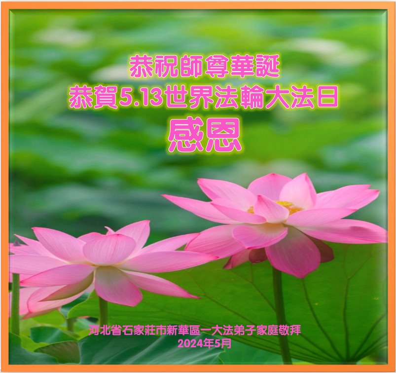 河北省石家庄市一大法弟子家庭恭祝伟大慈悲的师尊生日快乐!恭贺世界法轮大法日!