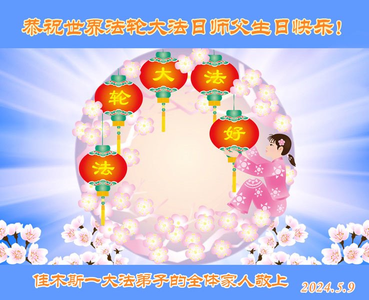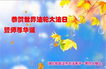 感恩师尊恩赐弟子全家修炼的机缘。 湖北省武汉市大法弟子一家恭贺世界法轮大法日!