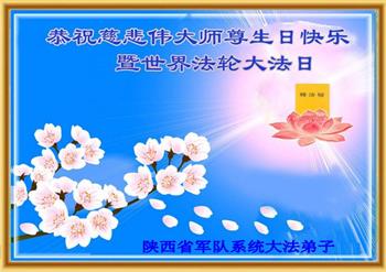 普天同庆法轮大法洪传世界三十二周年! 解放军总医院退休干部大法弟子敬上 陕西军队系统大法弟子恭祝慈悲伟大的师尊生日快乐!暨法轮大法日!