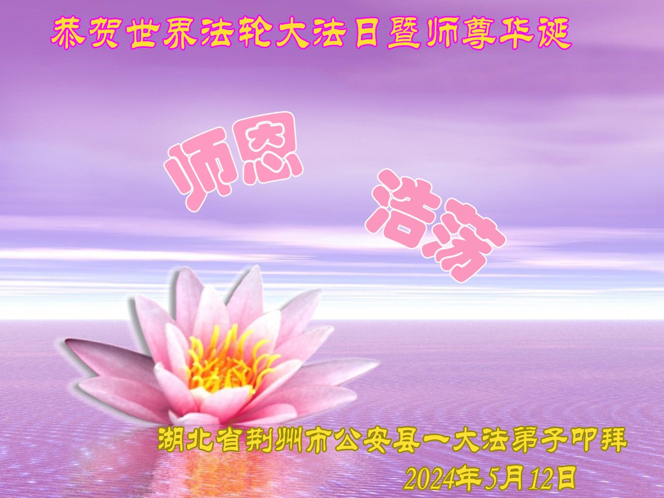 感恩师父慈悲救度!盼望师尊早日回到中原! 湖北高校大法弟子敬上 二零二四年五月十二日 中国大陆公安大法弟子恭祝师尊生日快乐!暨世界法轮大法日!