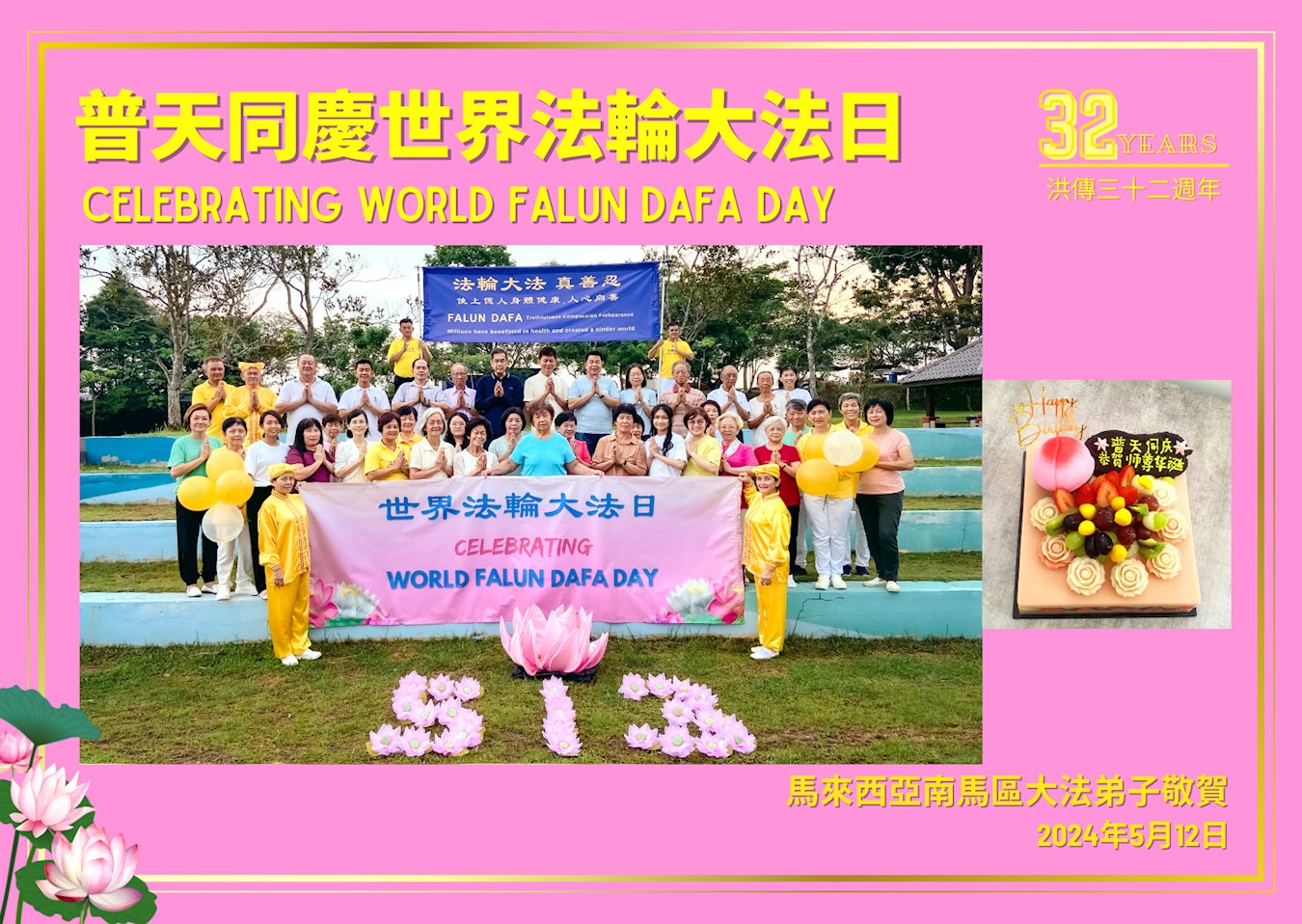 【明慧网二零二四年五月十六日】 马来西亚南马区大法弟子敬贺世界法轮大法日!