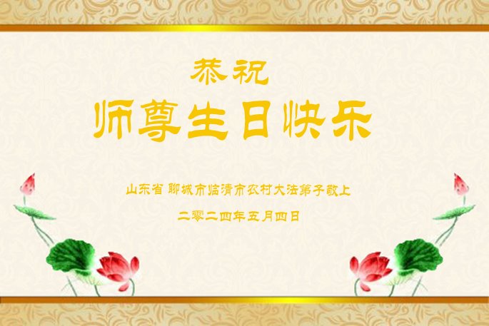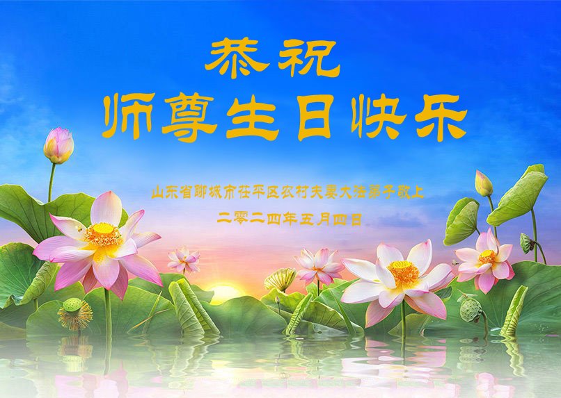 恭贺李洪志大师寿诞,庆祝庆祝5月13日世界法轮大法日! 山东省聊城市茌平区农村夫妻大法弟子恭祝师尊生日快乐!