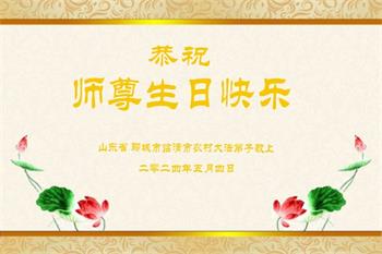 山东省青岛市平度市教育系统大法弟子恭祝慈悲伟大的师尊生日快乐!