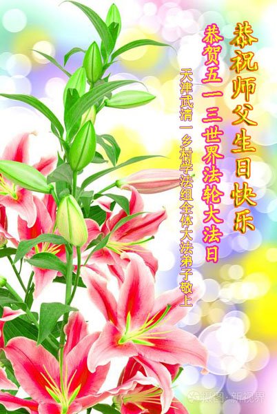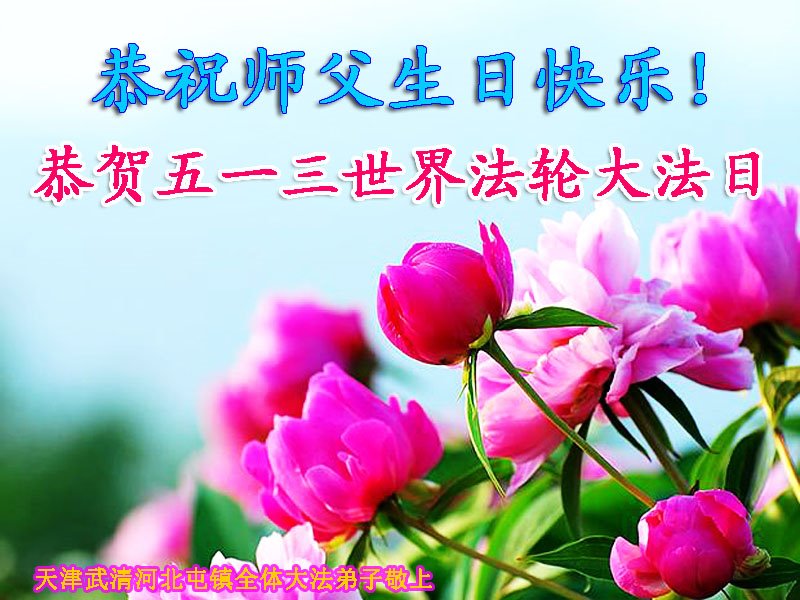 天津市武清区河北屯镇全体大法弟子恭祝慈悲伟大的师尊生日快乐!
