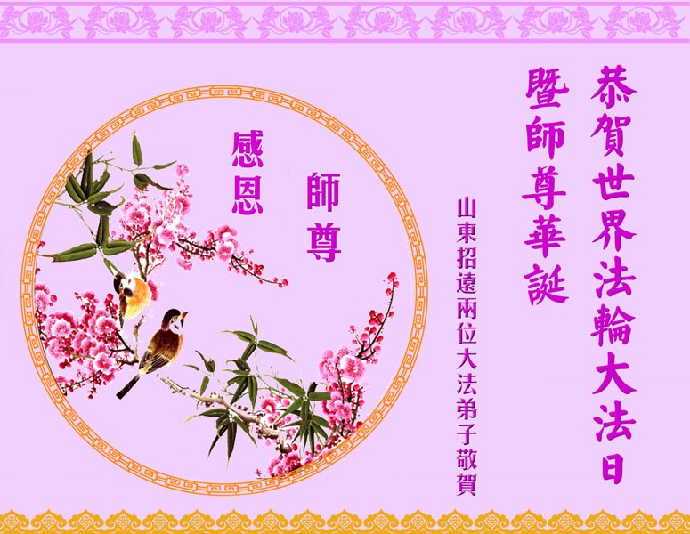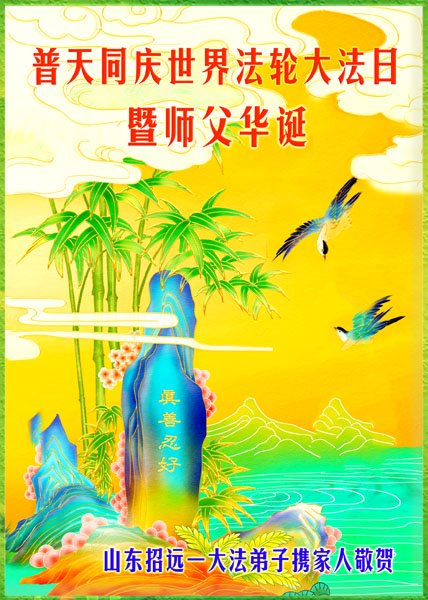山东省烟台市招远市大法弟子恭贺世界法轮大法日暨师尊华诞!