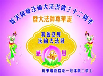 山东烟台招远大法弟子恭贺世界法轮大法日暨师父华诞!感恩师尊慈悲救度!