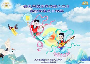 感恩师尊无微不至的保护!感谢师尊的慈悲苦度!弟子们无以回报,只有做好三件事,精進实修,让师尊少一份操劳。在此叩拜师尊!祝师父生日快乐! 上海黄浦区两名大法弟子恭祝师尊生日快乐!普天同庆世界法轮大法日!