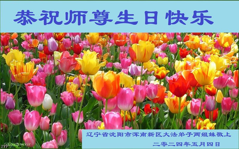 辽宁省沈阳市浑南新区姐妹俩恭祝师尊生日快乐!普天同庆法轮大法日!