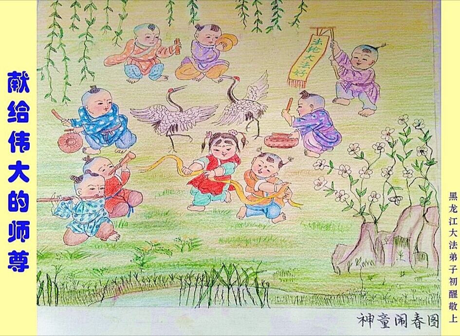 图:神童闹春图,二零二四年“五·一三”之际献给师父李洪志