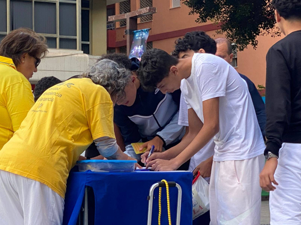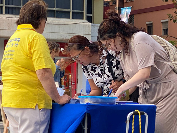 年轻姑娘伊内斯(Inés)接过法轮功学员递上的真相传单,在了解真相后她表示,早就知道中共是独裁政权,在中国没有信仰自由,但不清楚具体究竟发生了什么?在了解更多详情后,她毫不犹豫地签名支持法轮功反迫害,并感谢法轮功学员让她和更多人知道真相。 |