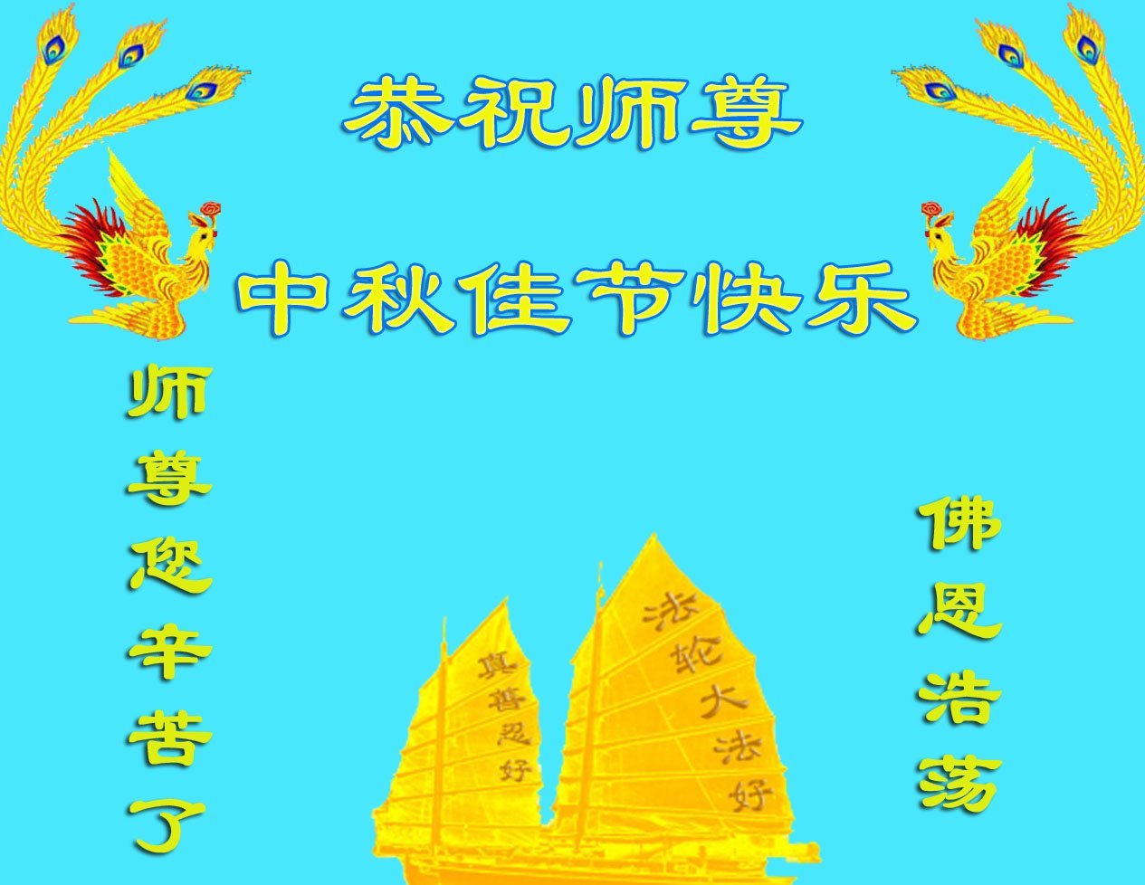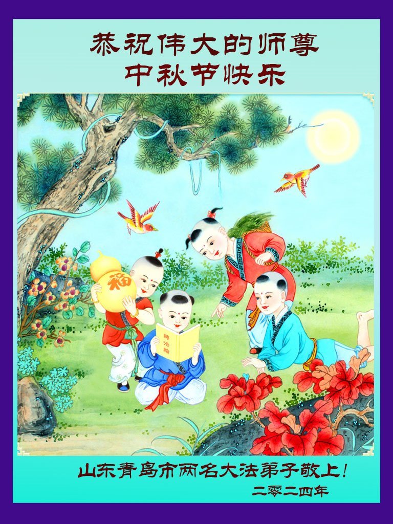 【明慧网二零二四年九月十五日】 山东省青岛市市南区一学法小组大法弟子恭祝师尊中秋节快乐!