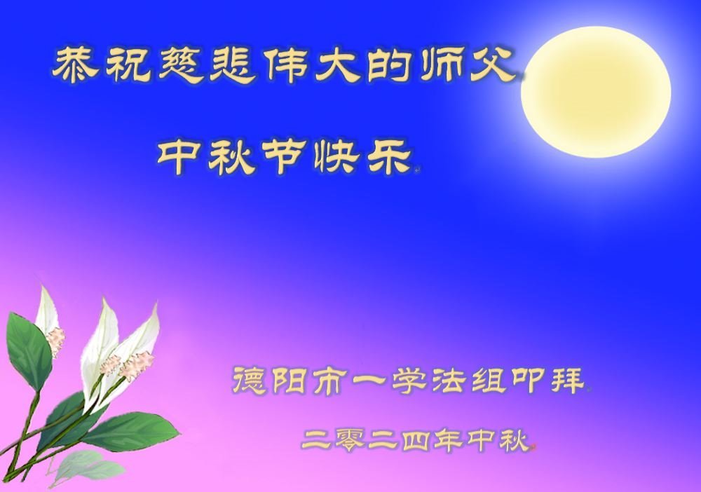 师尊您辛苦了!您为了穹宇众生的得度延长时日辛苦操劳!弟子们除了感恩,还是无尽的感恩! 在这中秋团圆的日子,弟子们用最虔诚的心恭祝慈悲伟大的师尊中秋快乐! 弟子们一定修好自己,做好三件事,助师救度更多的众生,直到与师尊的最后大团圆! 四川南充全体大法弟子 合十 二零二四年八月十七日 四川省德阳市一学法小组大法弟子恭祝师父中秋节快乐!