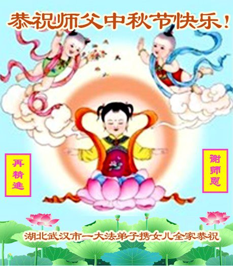 湖北省武汉市一大法弟子携女儿全家恭祝师尊中秋佳节快乐!