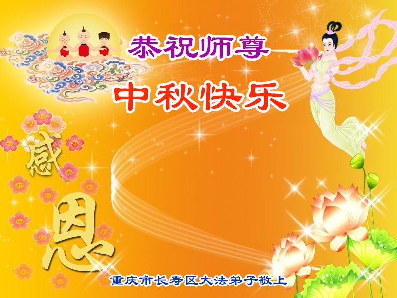 恭祝师尊中秋快乐! 重庆市沙坪坝区四位大法弟子敬上 重庆市九龙坡区一家三位大法弟子恭祝师尊中秋快乐!