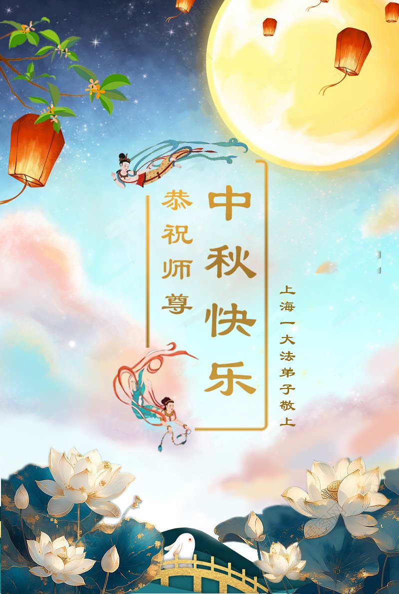 恭祝师尊中秋快乐! 上海长宁区两位大法弟子敬上 上海普陀静安两位大法弟子恭祝师尊中秋快乐!