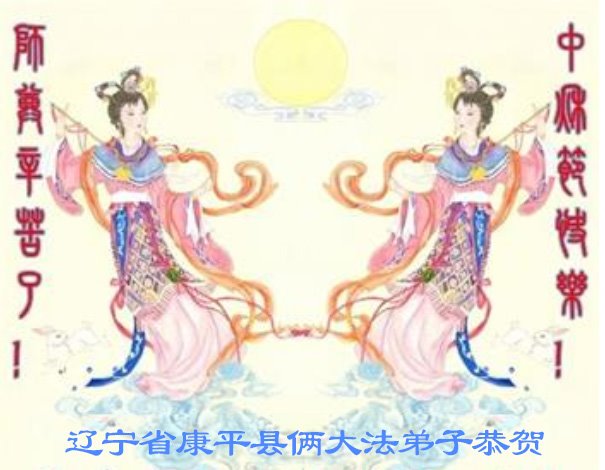 恭祝师尊中秋节快乐! 感恩师尊慈悲救度。师尊您辛苦了! 辽宁省沈阳市三姐妹学法小组大法弟子敬上 辽宁省沈阳市康平县俩大法弟子恭祝师父中秋节快乐!