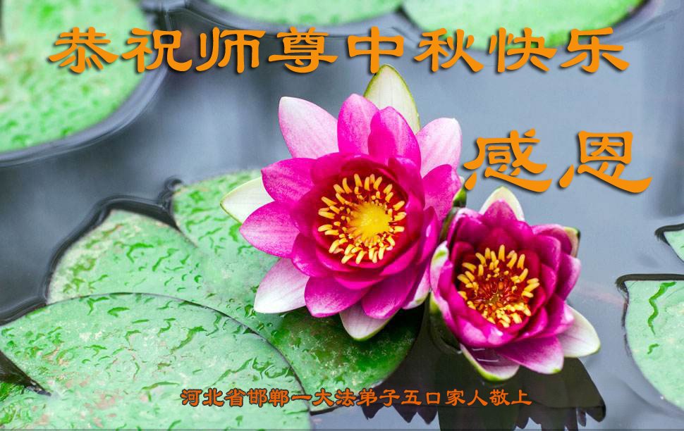 弟子全家恭祝师尊中秋节快乐! 谢谢师父的慈悲救度。师父您辛苦了。 河北省邢台市信都区一大法弟子全家敬上 河北省沧州市泊头市全体大法弟子恭祝师尊中秋节快乐!