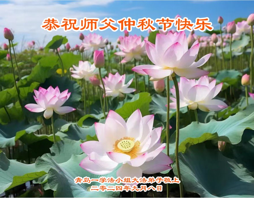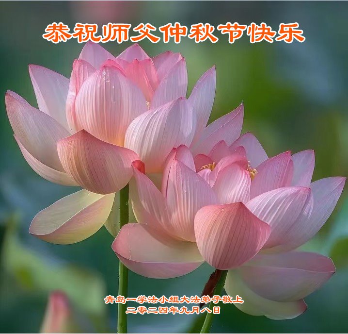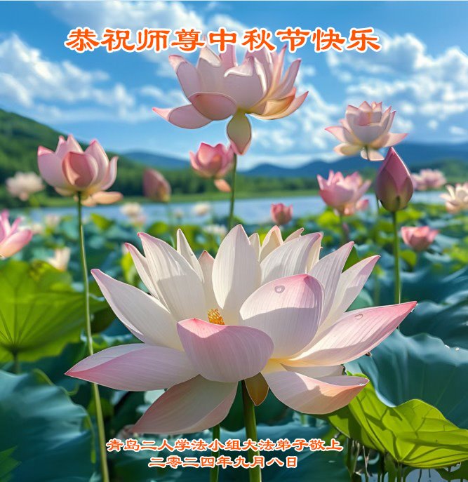 【明慧网二零二四年九月十六日】 山东省青岛市市北区一学法小组大法弟子恭祝慈悲伟大的师尊中秋节快乐!