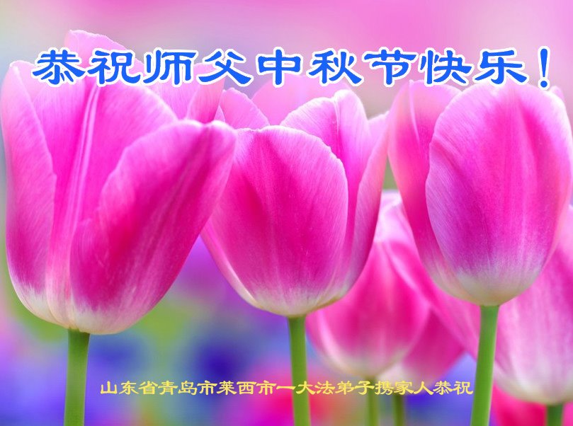 师父您好!师父您辛苦了!感恩师父的慈悲救度,弟子会尽心做好三件事,在所剩不多的时间里修好自己,兑现誓约,圆满随师还! 山东省青岛市莱西一大法弟子携家人敬上 山东省青岛市莱西市一学法小组大法弟子恭祝师父中秋快乐!