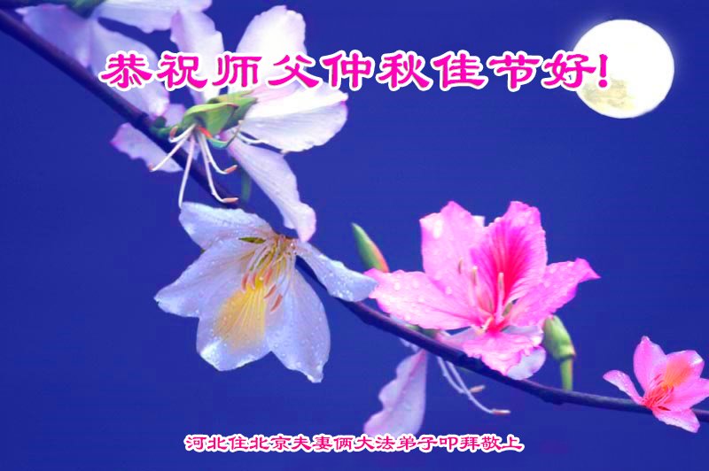 每逢佳节倍思亲,在中秋团圆之际,弟子们更加想念师尊!弟子们在修炼中的每一步都离不开师尊的慈悲保护,无限感恩师尊为弟子所做的一切!弟子会精進,让师尊少操心,多欣慰! 北京市海淀区一学法小组大法弟子敬上 北京夫妻俩大法弟子携全家恭祝师父中秋佳节好!