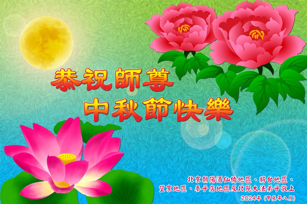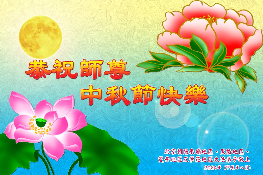 恭祝师尊中秋节快乐!非常想念师尊,弟子谨遵师尊的教诲精進实修,跟随师父回家。 北京朝阳酒仙桥地区、将台地区、望京地区、麦子店地区和北苑大法弟子敬上 二零二四年九月二日 北京樊羊路一大法弟子恭祝师尊中秋快乐!