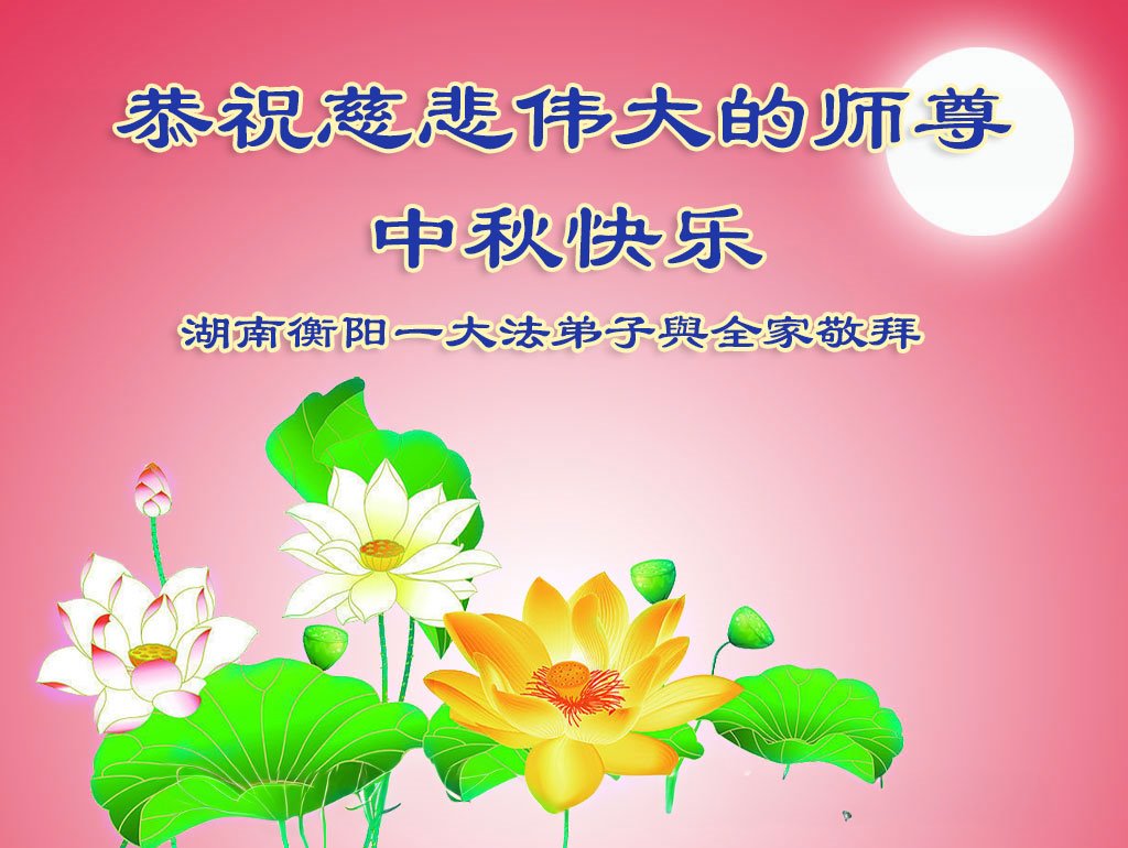 恭祝慈悲伟大的师尊中秋节快乐! 谢谢师尊慈悲救度,弟子们一定精進实修,做好三件事,让师尊少一点操劳,以谢师恩! 湖南省怀化市全体大法弟子敬上 湖南省衡阳一大法弟子携全家恭祝慈悲伟大的师尊中秋快乐!