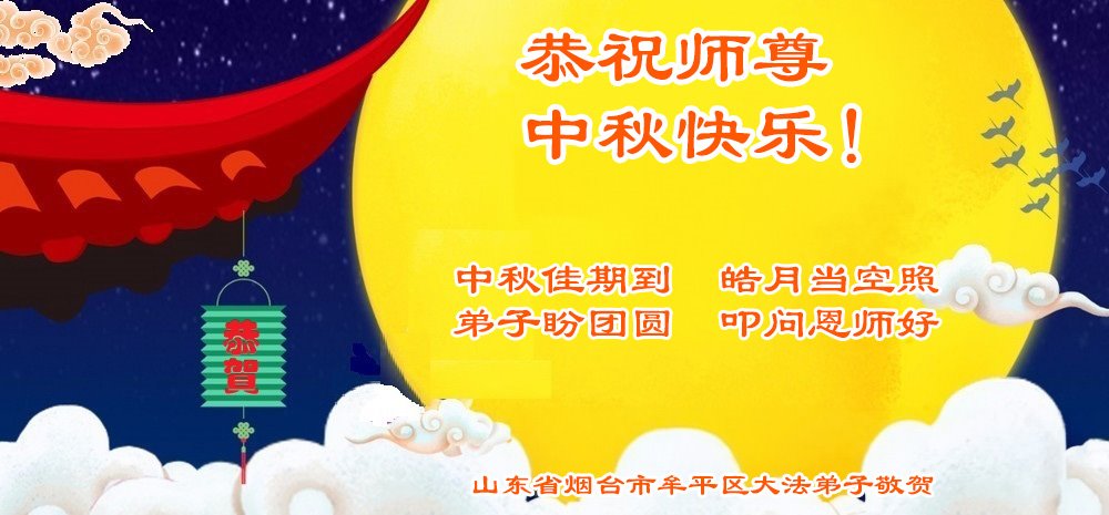 中秋佳期到 皓月当空照 弟子盼团圆 叩问恩师好 山东省烟台市牟平区夫妻大法弟子恭祝师尊中秋节快乐!