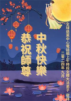 全球.退:党!中心电话平台查号组全体大法弟子恭祝慈悲伟大的师尊中秋节快乐!