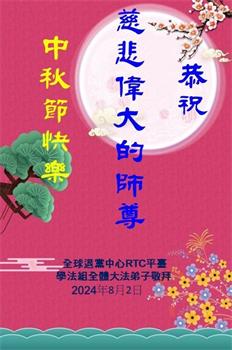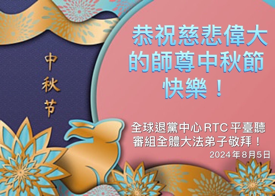 全球.退:党!中心RTC平台网络真相组全体大法弟子敬上 二零二四年八月十二日 全球.退:党!中心RTC平台学法组全体大法弟子恭祝慈悲伟大的师尊中秋节快乐!