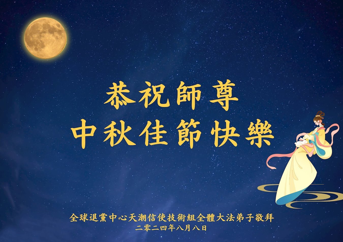 全球.退:党!中心天*潮*信*使技术组全体大法弟子敬上 二零二四年八月八日 来到海外的大法弟子及家人恭祝师尊中秋快乐!